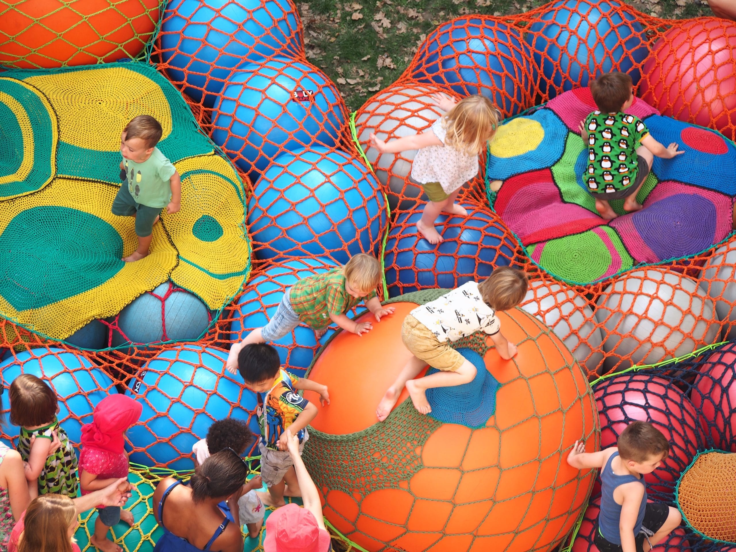 La resposta és que sí. Playscapes (Paisatges de joc) és una instal·lació d’Art Croche creada per l’artista belga Cathy Bertel per als més petits. Cathy Bertel crea escultures i entorns esculturals fets amb materials artístics no tradicionals, neumàtics, teixits elàstics i ganxet. L’obra de Bertel es dirigeix a la totalitat del cos de l’espectador i el fa participar de manera activa i autònoma en l’experiència.